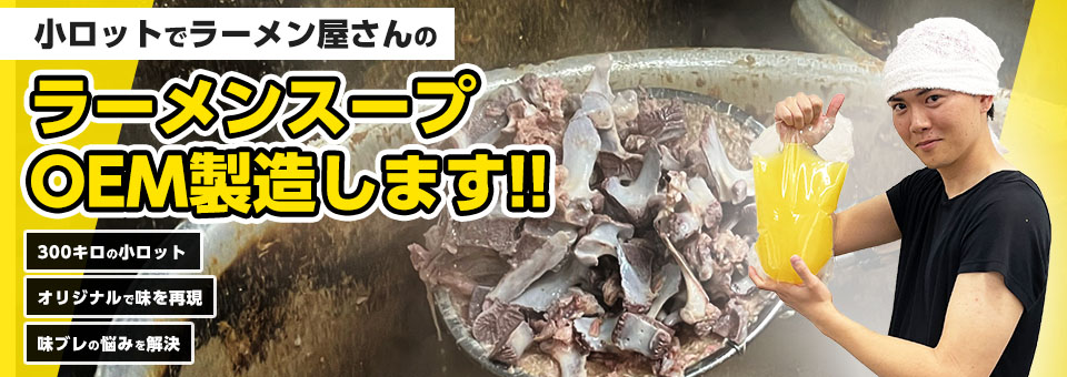 こんにちは!業務用ラーメンスープ工場スタッフです! ラーメンスープやタレをPB化するお客様は、いくつか店舗を経営していて、更に増やしていく・FC化していくという段階でお問い合わせいただくことが多いん… >>続きを読む