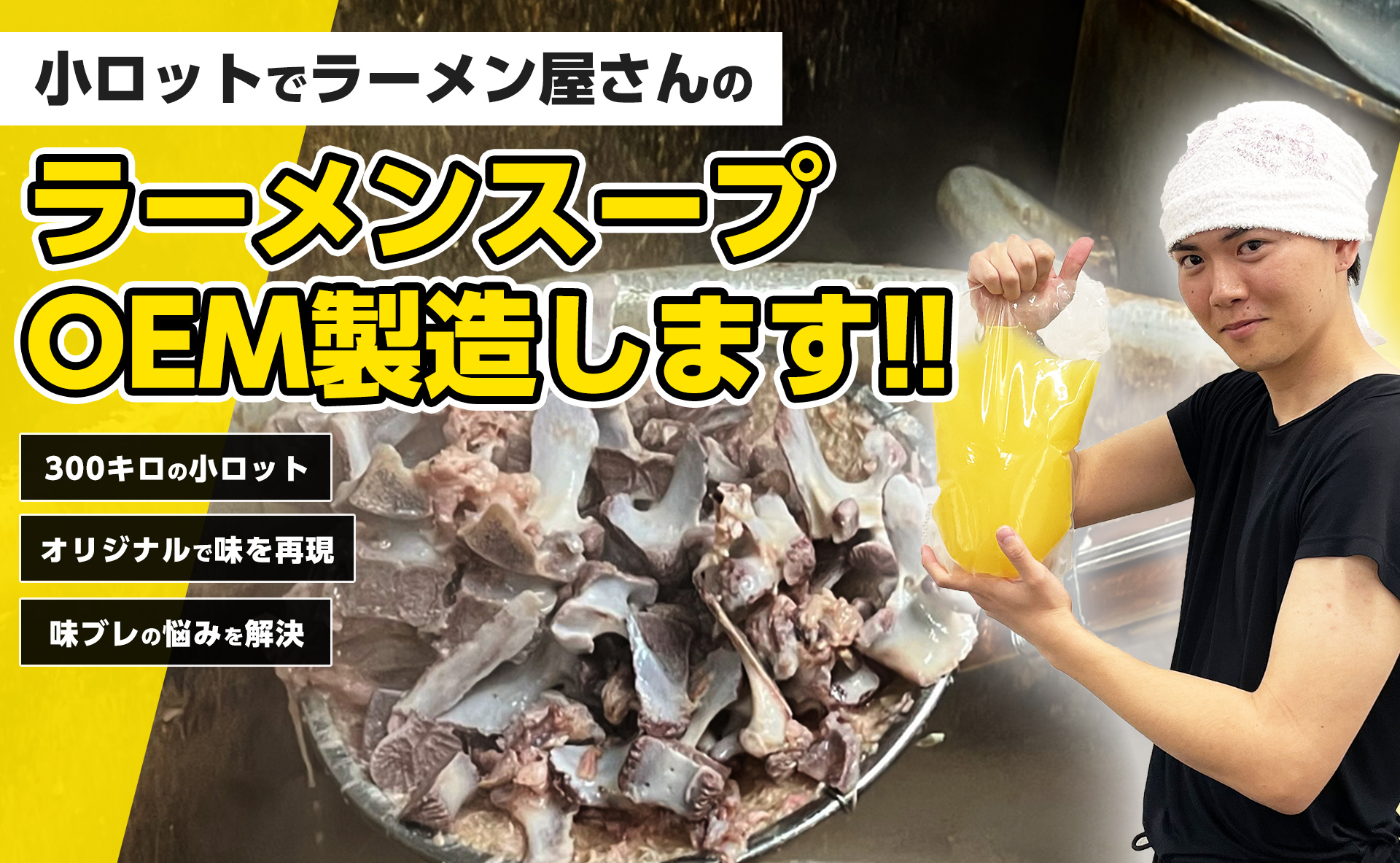 多くのラーメン屋さんや飲食店さんでラーメンを展開していこうと思っているオーナーさまからよく聞くお悩みは、ラーメンスープをOEMで委託したいけど、製造ロットが大きくてなかなか依頼できない・・・ということだと思います。