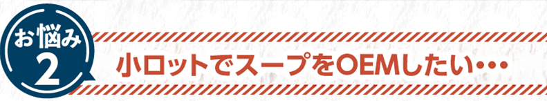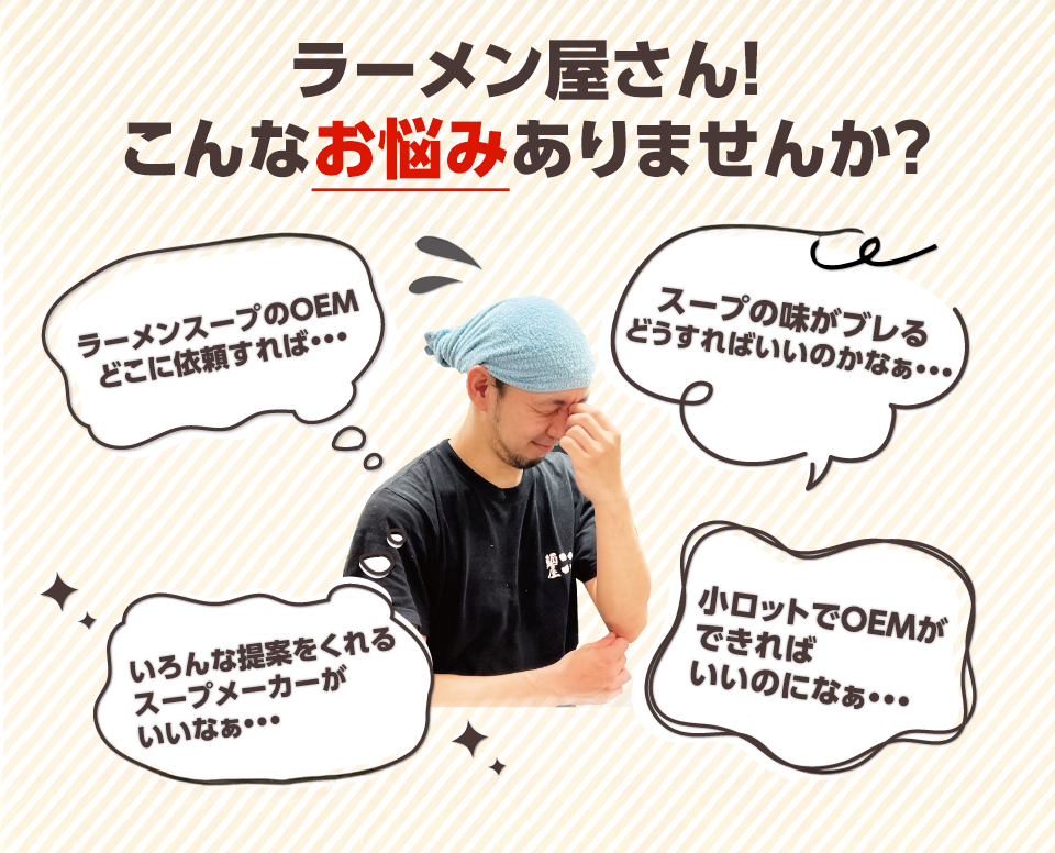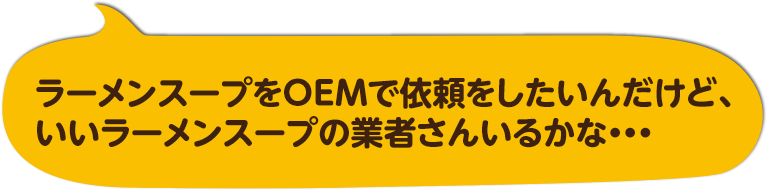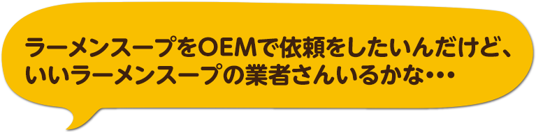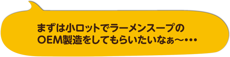 これから今経営しているラーメン屋をチェーン展開したいし、フランチャイズ展開も考えているので、まずは小ロットでラーメンスープをOEM製造してもらえないかなぁ~・・・。