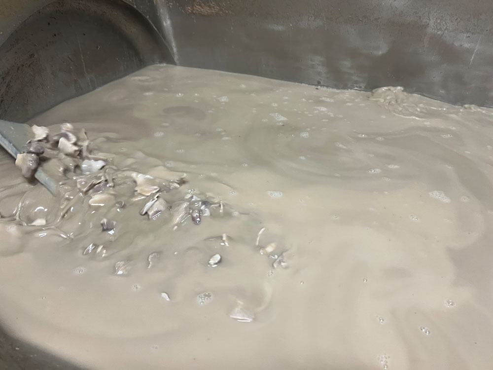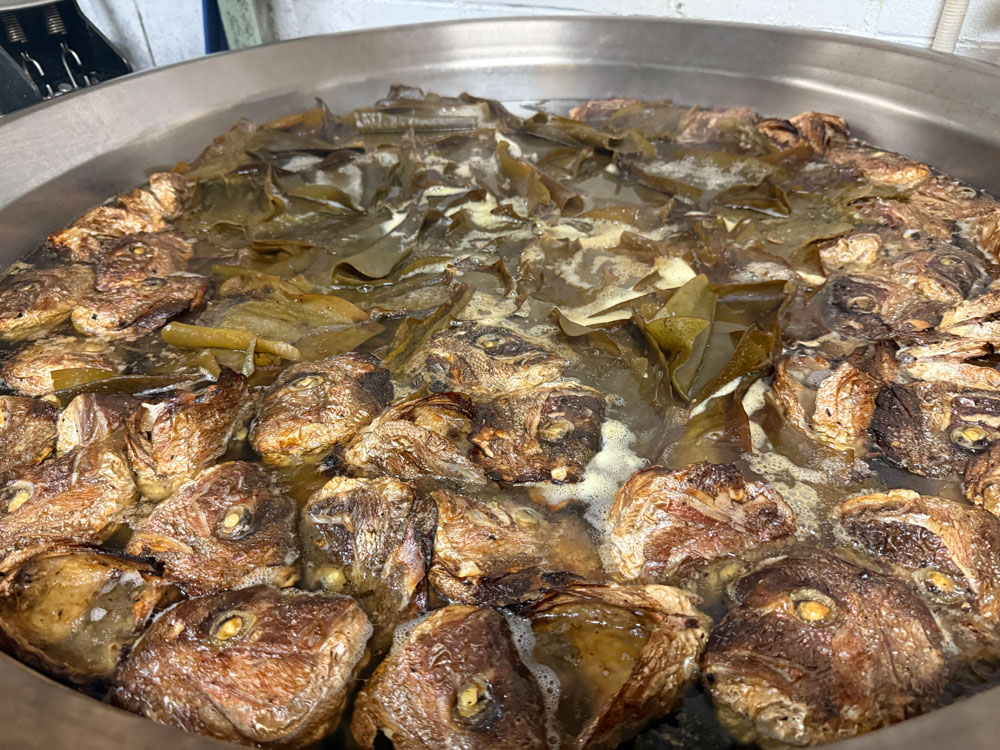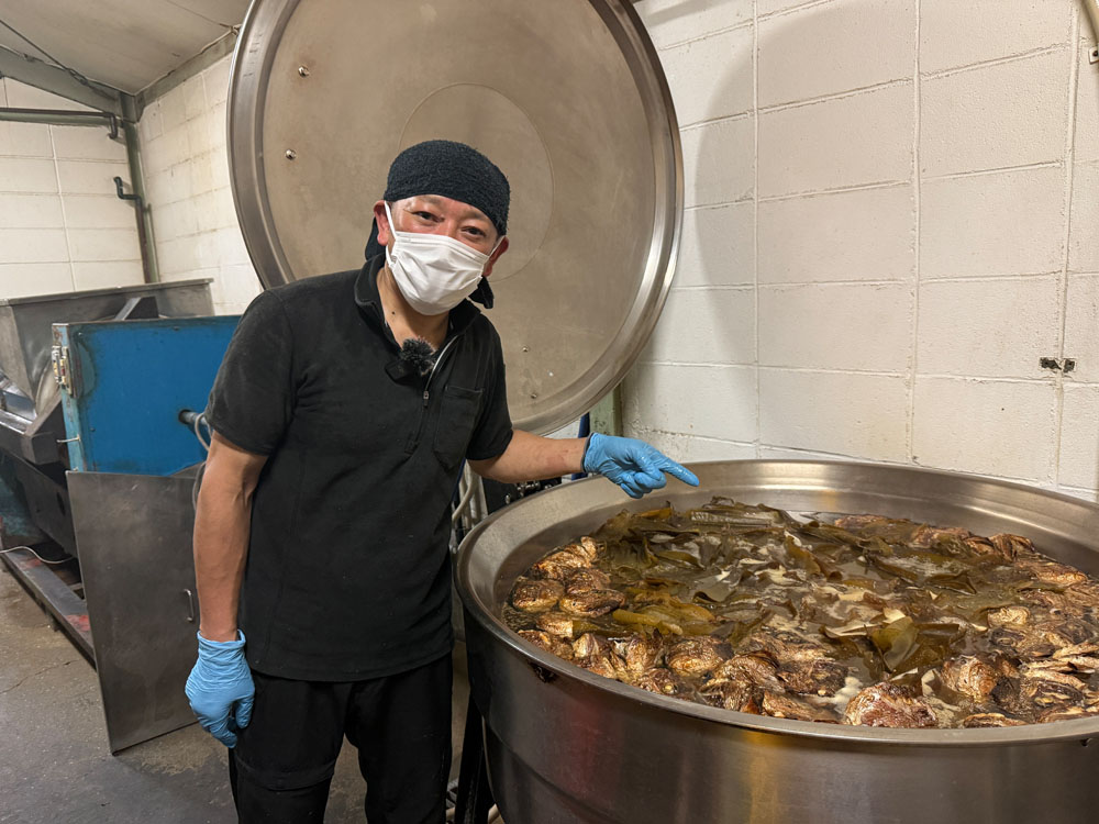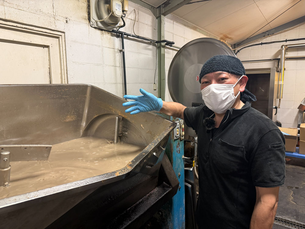 しっかりとスープの濃度とダシが取れるように400キロ~の小ロットで製造しております。