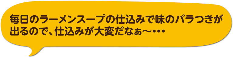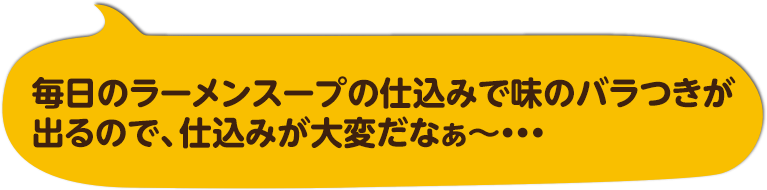 ラーメン屋さんの悩みであるラーメンスープの仕込みで生じる味のバラつきを解消するために、『丸善マテリアルフード』は各ラーメン屋さんで作っているラーメンスープをオリジナルでOEM製造することで、お悩みを解決してきました。