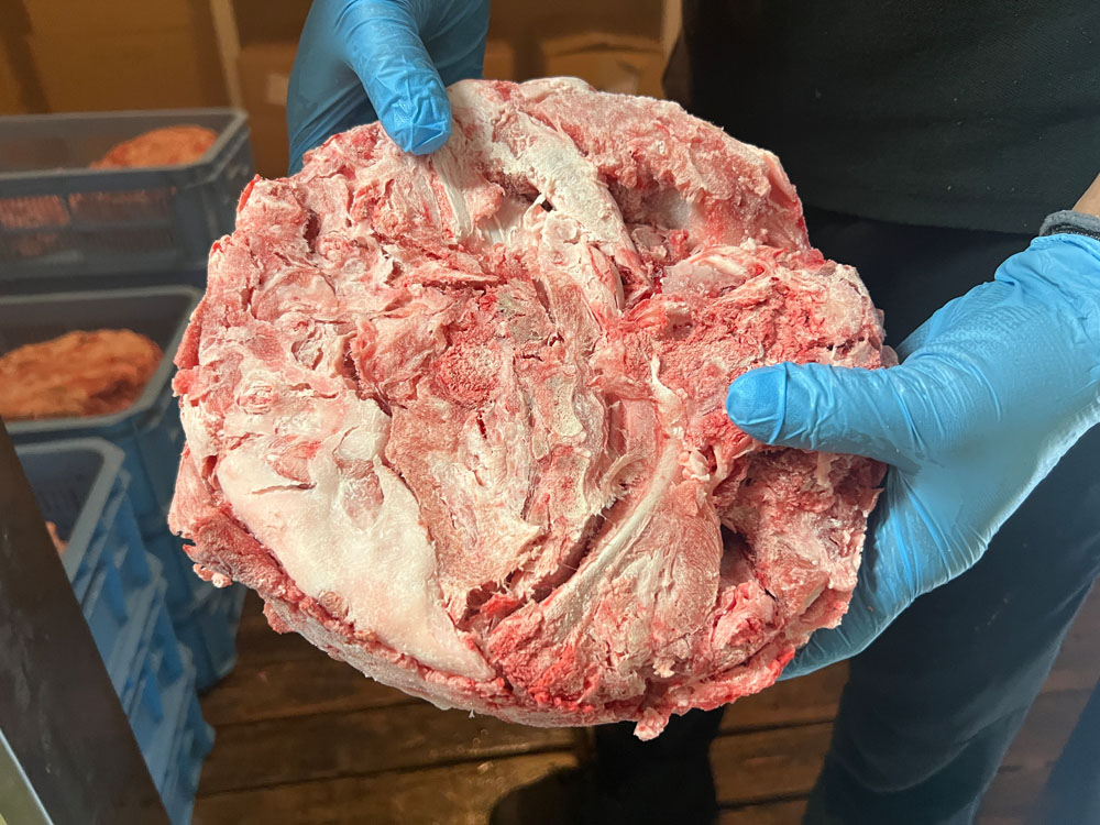 豚骨ガラも自社で調達しており、豚の骨をしっかりとプレスすることで中のダシがしっかりと出るようにしています。